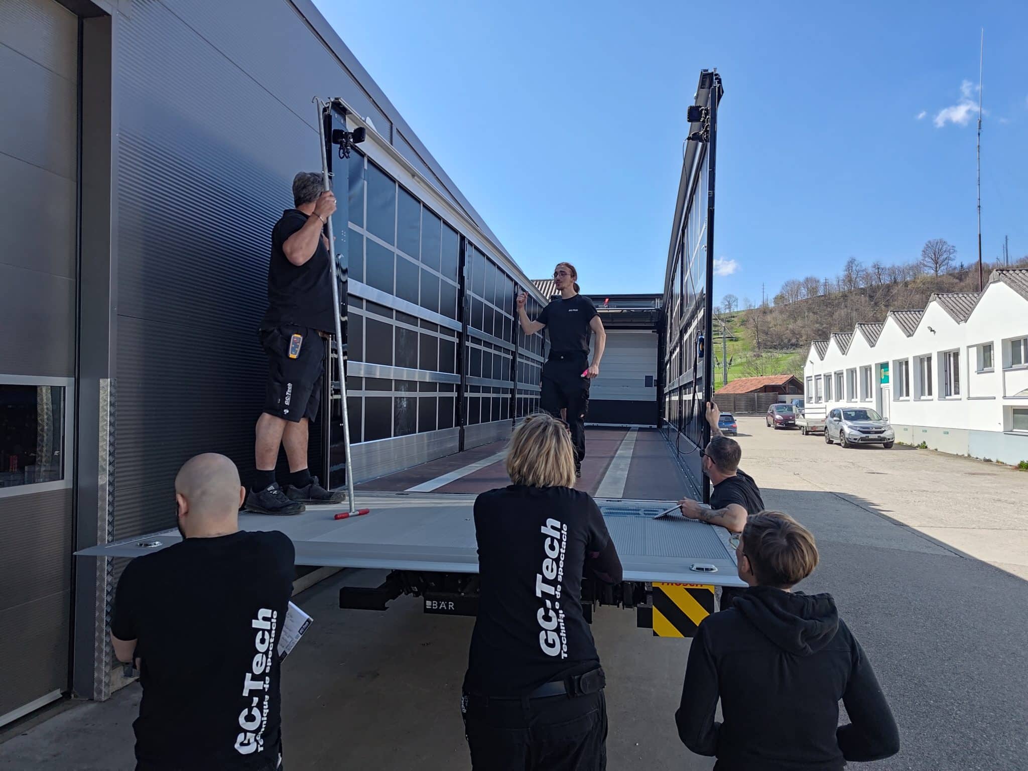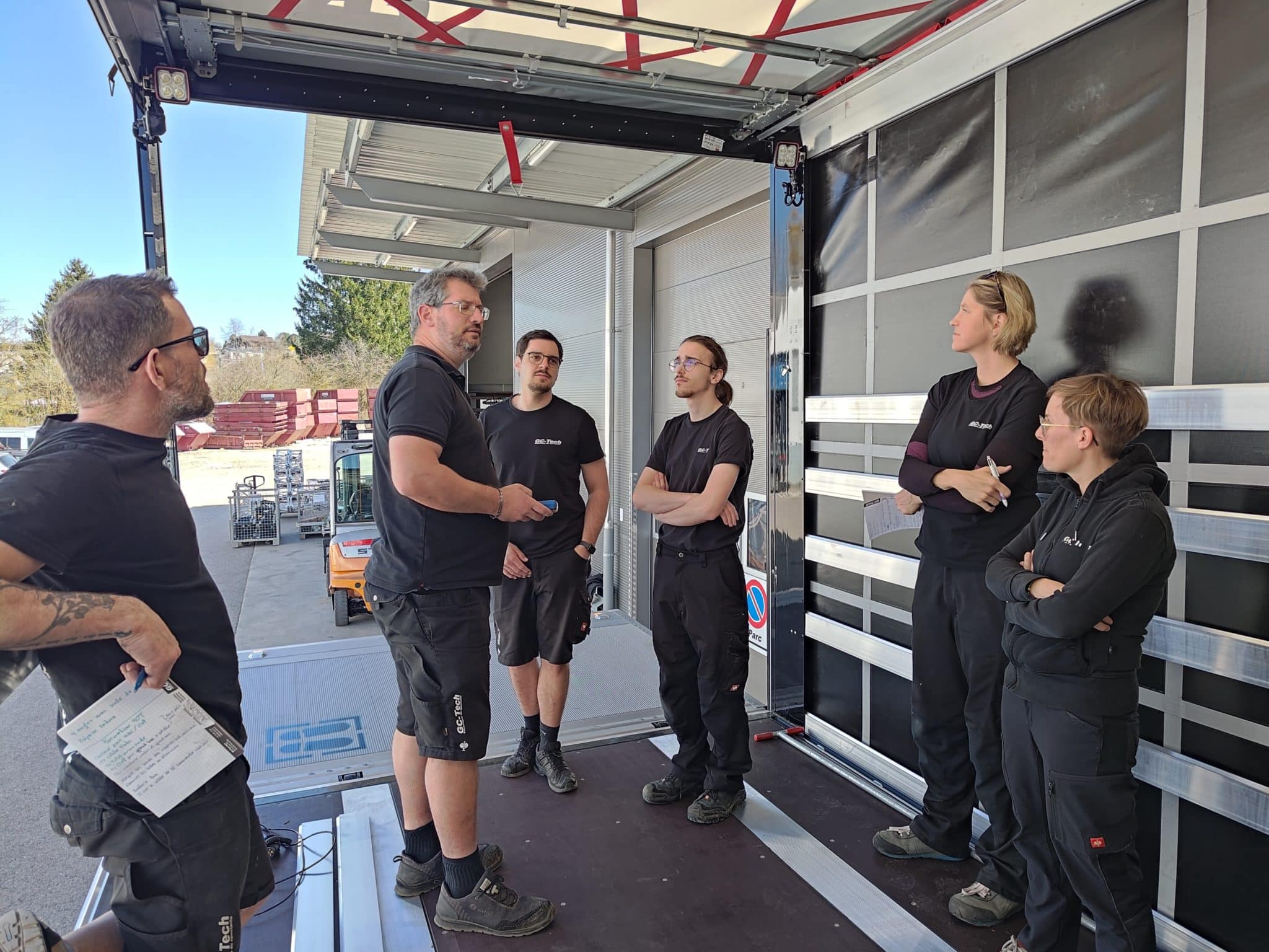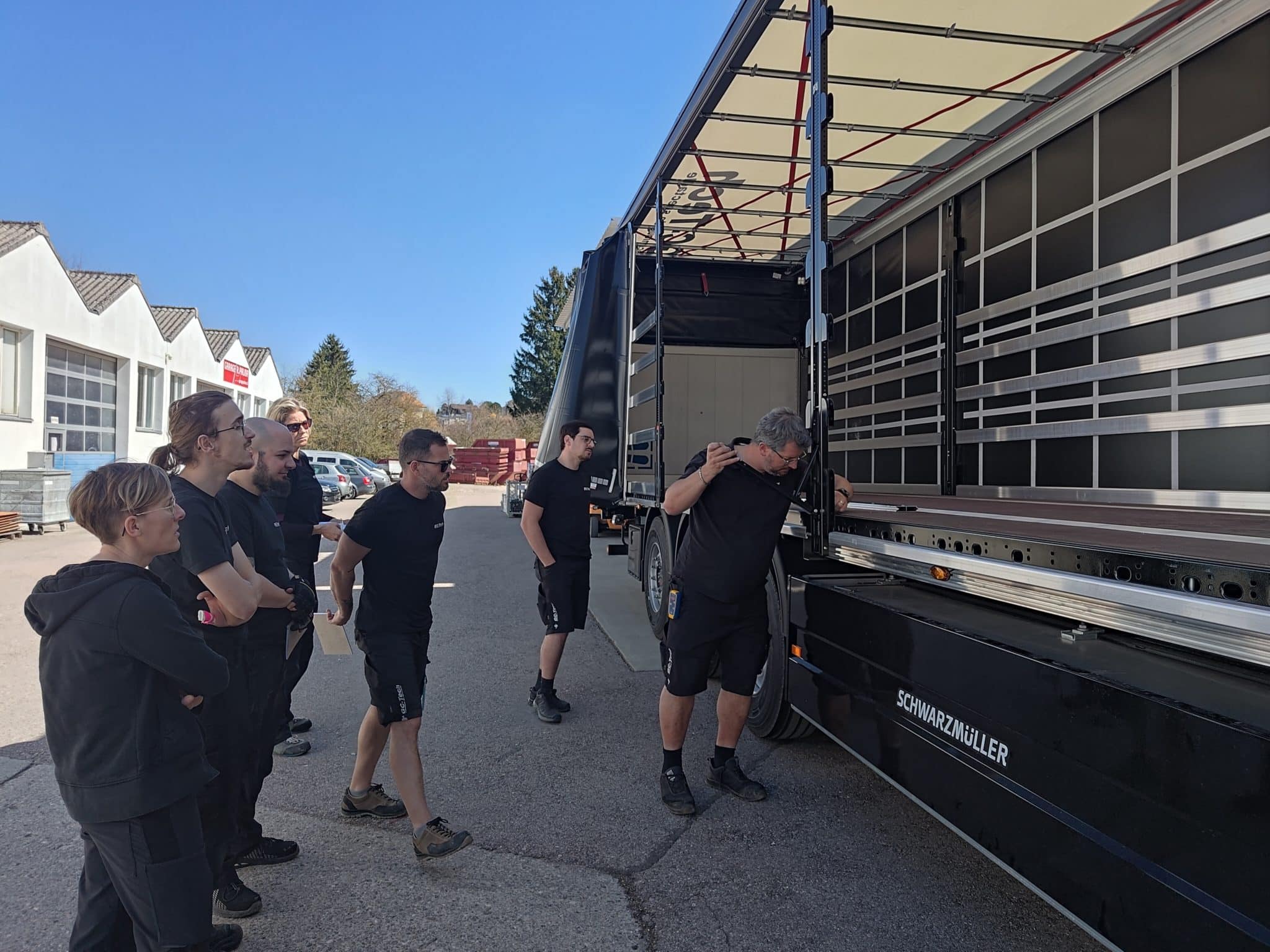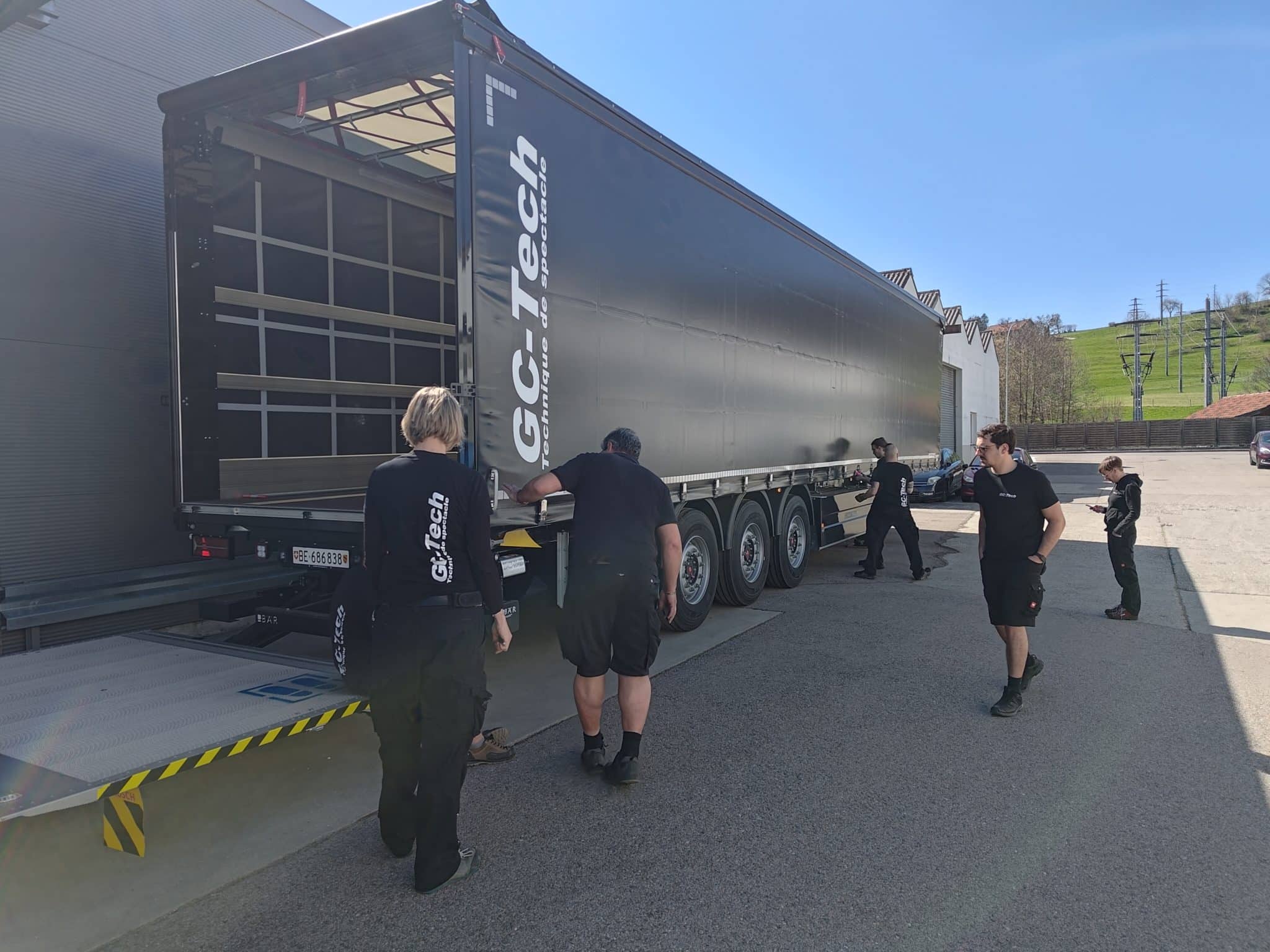 Nous pourrons désormais charger cette semi-remorque quand ça nous arrange, sans devoir faire patienter le chauffeur. Nous continuerons à collaborer avec notre transporteur local Lehmann Transport pour déplacer la semi-remorque du dépôt aux prestations, et retour.