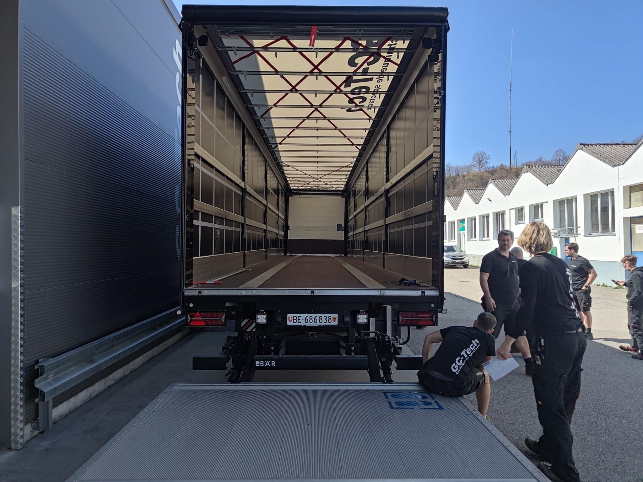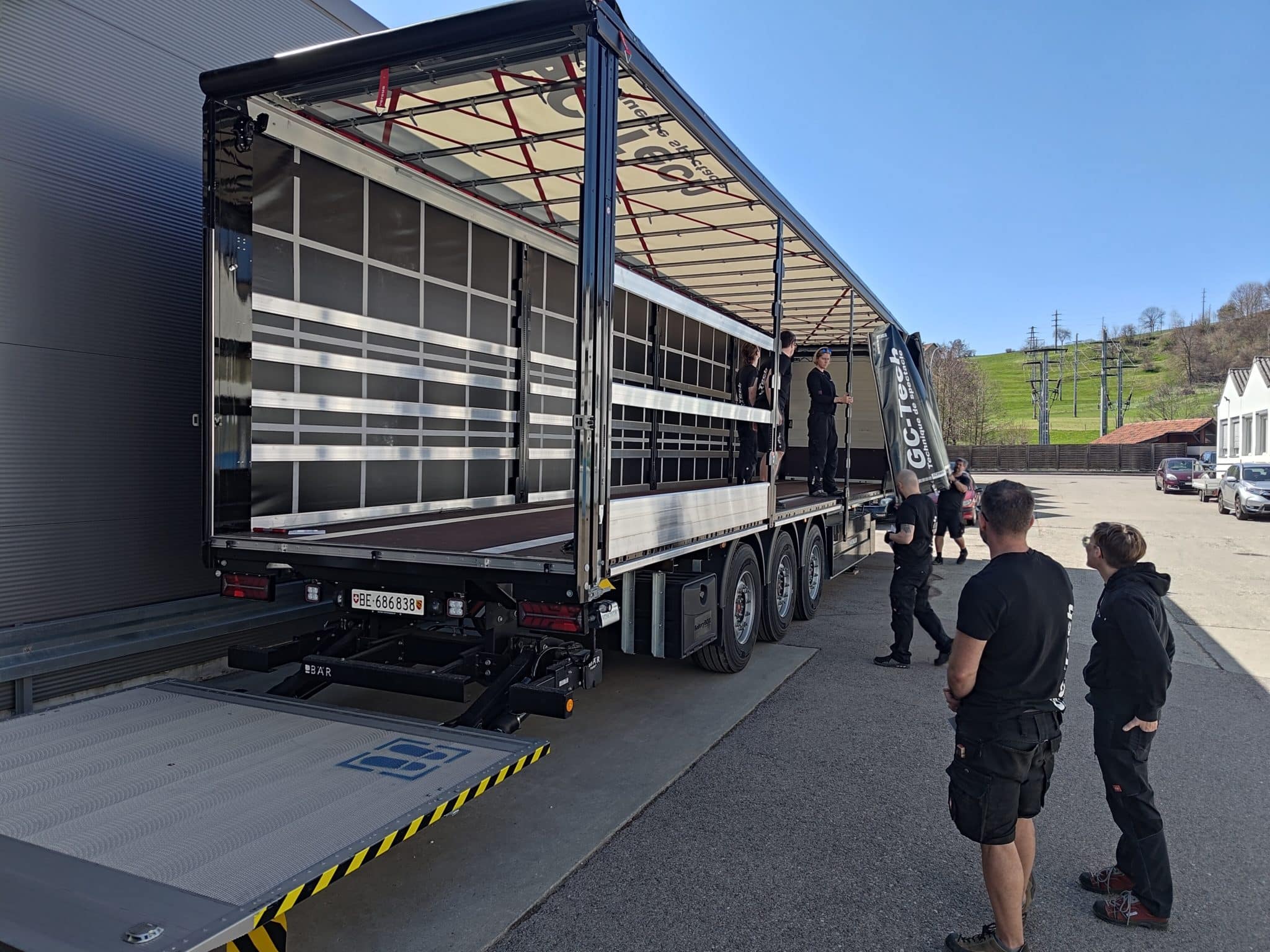 Nous avons récupéré ce mercredi une nouvelle semi-remorque Schwarzmueller, achetée chez Eschler Fahrzeugbau AG : 40 tonnes, et 29’440 Kg de charge utile! Un beau bébé !